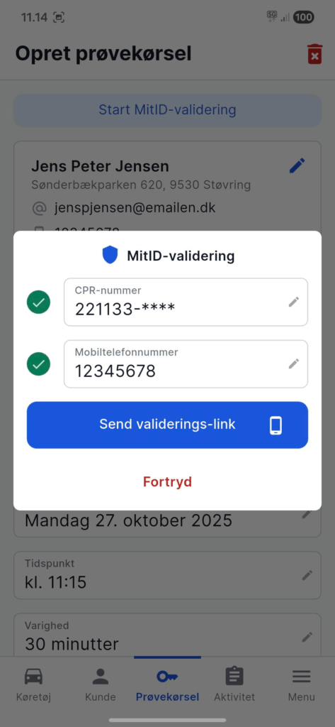 En banebrydende nyhed i denne version er muligheden for at validere dine kunder via MitID under oprettelse af prøvekørsler. Dette tiltag er udviklet for at øge sikkerheden og beskytte mod tyveri af demobiler, hvor kunden forsøger at bruge et falsk eller stjålet kørekort. Med et enkelt klik kan du sende et link til kundens mobil, som åbner MitID og gennemfører valideringen – en nem og effektiv måde at sikre identiteten på. Prisen for hver validering er 5,0 kroner, og vi håber, at denne funktion vil give både tryghed og ro i maven.