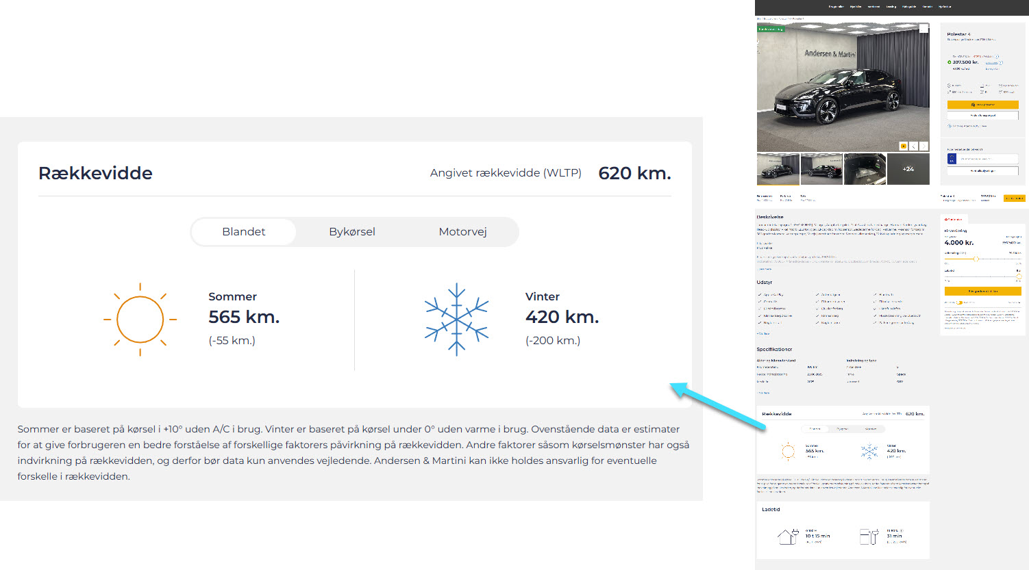 På denne måde får besøgende en idé om, hvad elbilen kan – data hentes fra det største testmedie ev-database.org, der baserer langt de fleste tal på reelle målinger fra virkeligheden. Hvor dette ikke er muligt, er det en beregnet værdi.